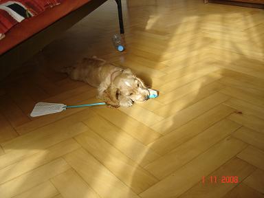 Ale nejlepší je můj pelíšek, hračky a hlavně plná mistička.