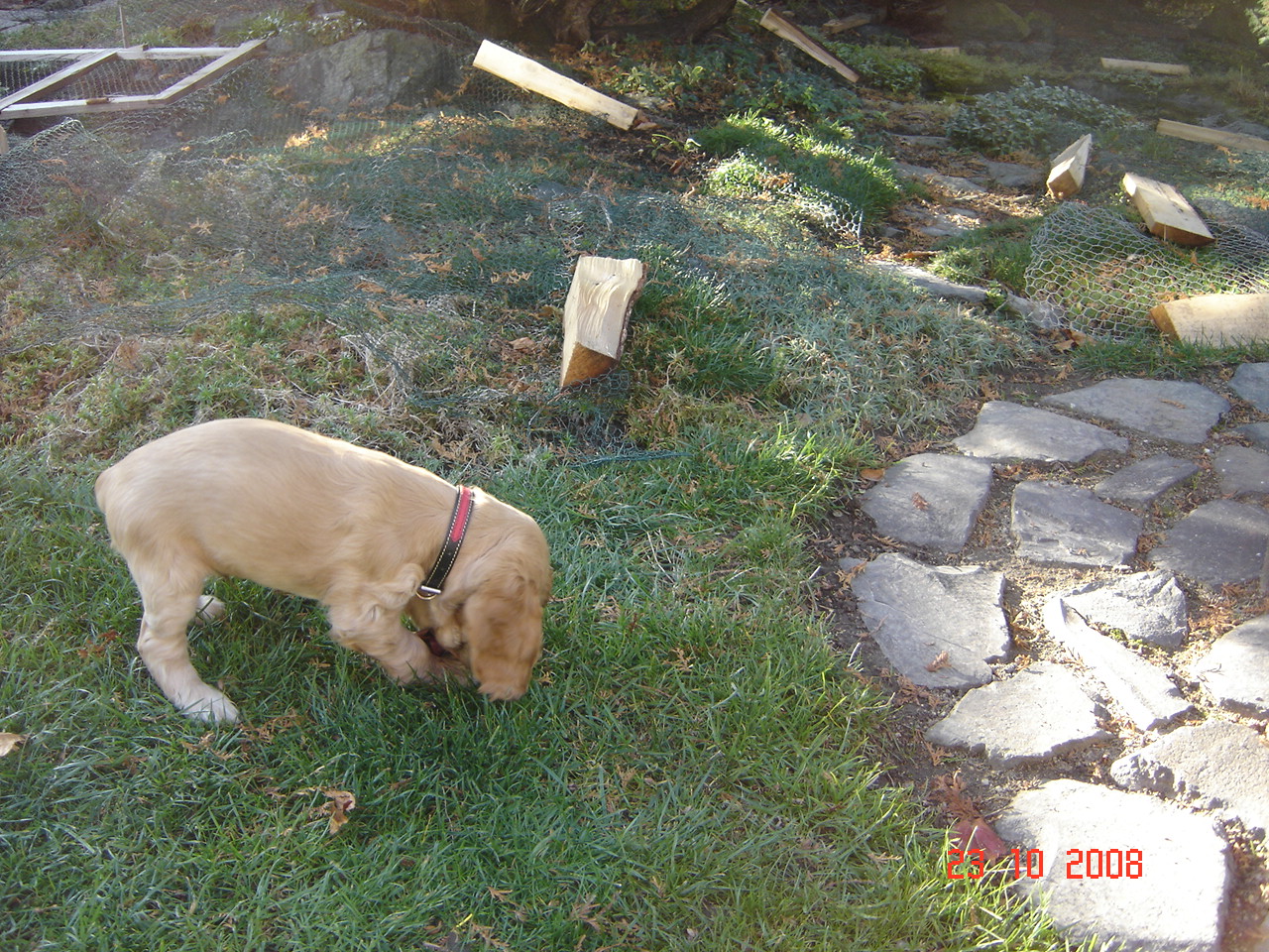 Druhý den jsem začal zkoumat,kam mě to vlastně dali.Mají tu zahrádku, kde se dá krásně trhat všechno, co potkám. A že se toho dá potkat hodně, to jsem zjistil velice brzy. Ale všimli jste se, že mi ty nejlepší kytičky ke kousání schovali pod drátěnku? To jsou mi způsoby !
